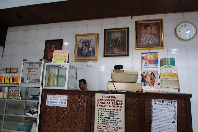 Begitu masuk, wow.. kutercengang karena area restonya sangat apik. Kesan klasik yang elegan langsung tergambar jelas dari sisi desainnya yang dipenuhi dengan interior Jawa. Juga berbagai pajangan yang ketok mriyayeni beserta foto sang empunya resto dan tokoh-tokoh penting.