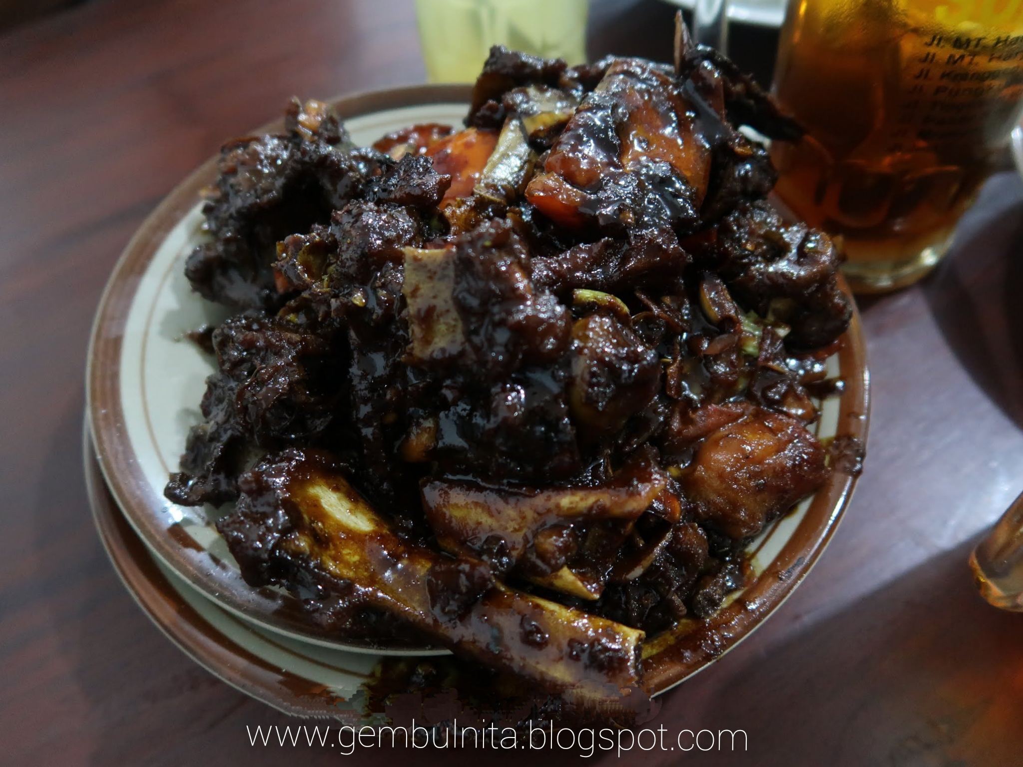 Selanjutnya adalah sang primadonanya yaitu thengkleng rica-rica kambingnya yang tak kalah munjung sepiring full. Wow! Wow! Wow!!! Ingin kuberkata wow sambil pasang mata belo seperti Puss in Bhoots yang minta ditayang-tayang #halah.....karena memang porsiannya udah macam makan wong seerte...buesar sekali. Si thengklengnya ini balungnya masih gede-gede. Dan dia warnanya gelap pekat ya. Di dasar tumpukan cacahan dagingnya terdapat irisan kol/kobis yang kurasa jauh lebih banyak dari si satenya tadi. Rasanya sendiri bagaimana? Gilllllls...sampai merem melek deh aku dibuatnya. Ga ngadi-ngadi enaknya Sayang...... Serius!!!! Buat potongan lidah Jawa yang demen manis pedes, aku suka banget ama rasa otentik dari si thengkelngnya ini. Pedesnya dominan berasal dari lada hitamnya sih...jadinya beneran nyegrak dan seperti naga yang hendak menyemburkan api. Wuuush!!!!!! Pedeeeeees desss desss...hotttttttt.....tapi tetep ya cuy, hauceuk. Gimana ya mengatakannya. Aku suka banget sih ama modelan pedesnya ini. Terlebih makannya sambil diisep-isep sampai ke njero balungan...Wuihhhh! Kagak nahan saiaaaa...emmmb! Manteb banget. Abis diisep-disep, dikoretin tuh kuahnya yang kentel, trus sambil disendok pula pake nasi dan juga irisan kol/kobis, uh dijamin lu olang bakal melayang sampai ke langit ke tujuh turunan tujuh tanjakan!!! #sawry lebe jilid 3. #biasa aku memang orangnya hiperbol hahaha. Ya, tapi balik lagi ke masalah selera sih. Buatku ini pancen seleraku banget. Seleramu bagaimana. Aku tak tau 😂🤣😋.