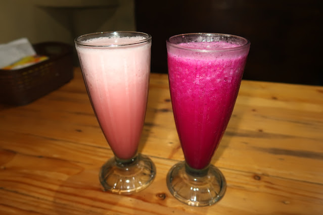 Kalau tempe gorengnya digoreng biasa ga pake tepung. Rasanya gurih. Cocok dimaem bareng nasi panas. Untuk minumannya, jusnya pake susu jadi emang manis creammy gitu. Rasa asem stroberi ketutup sama manisnya susu.