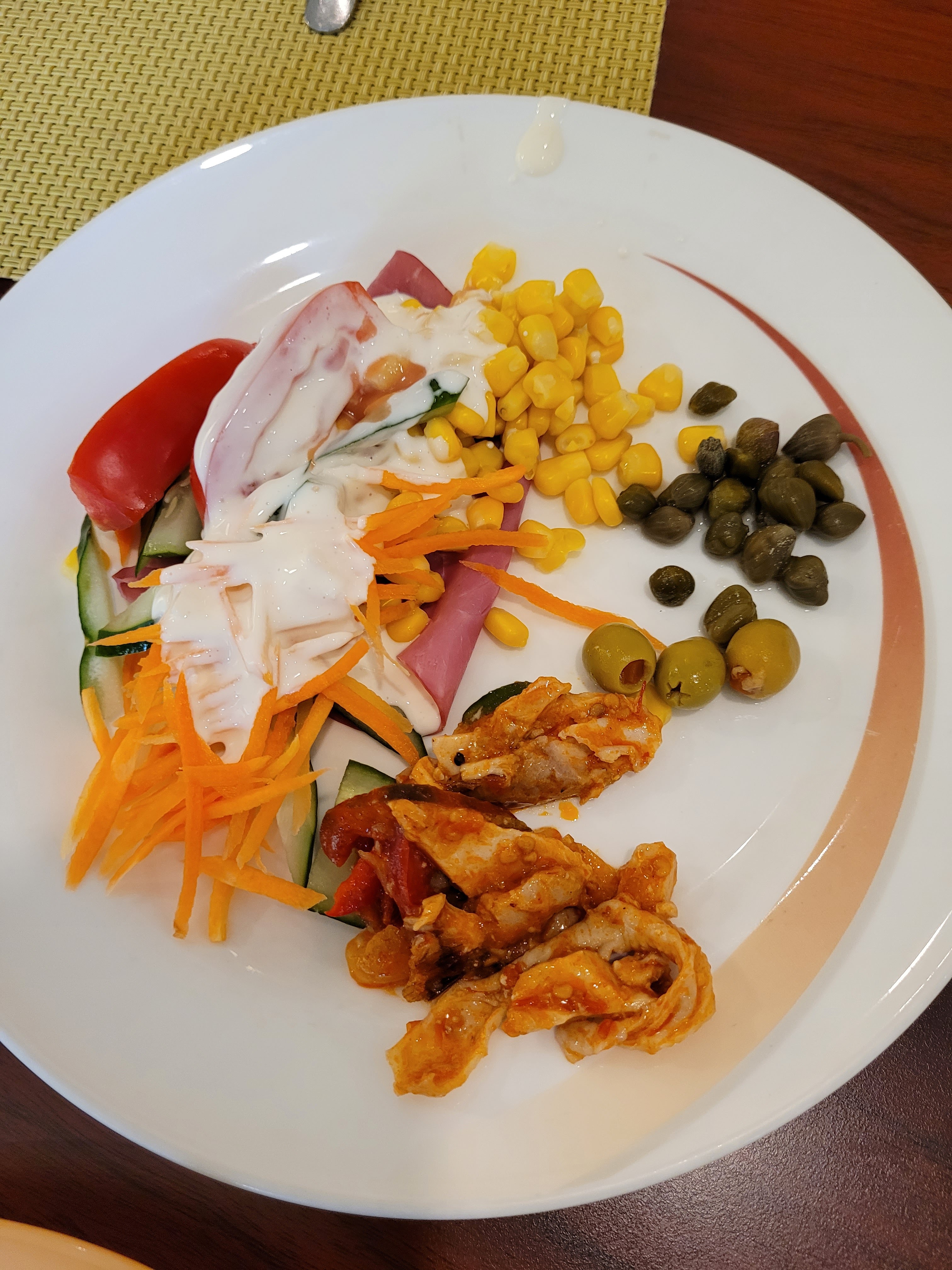 Sarapannya kali ini bingung. Saking banyaknya mulai dari menu Indonesia sampai western ada. Tapi Mbul ama Tamas ambilnya dikit aja. Soalnya ga tau kenapa tiap sarapan itu perut suka agak-agak kaget gitu. Jadi sekiranya yang anget di perut dan kemakan itu yang diambil. Akhirnya ganti-gantian tuh, ambil potato wedges, tomas panggang, mie goreng, salad, telor mata sapi setengah mateng, susuw, juice, infuse water, sama buah potong. Mbul juga ambilkan cereal dan bubur sayur juga puding roti panggang buat Kakak dan Adik. Yeayyy! Habis sarapan langsung berenang abis itu check out deh! Rampung liburannya hihihi...