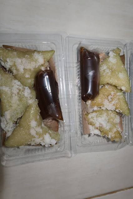 Mbul kemarin sebenernya ada lopis yang dikasih Mbahnya si Adek 2 pack mika. Lopisnya per pack 3-3. Jadi jumlah total ada 6. Nanti dimaemnya bareng kinca kental atau juruh. Ada pula parutan kelapanya.