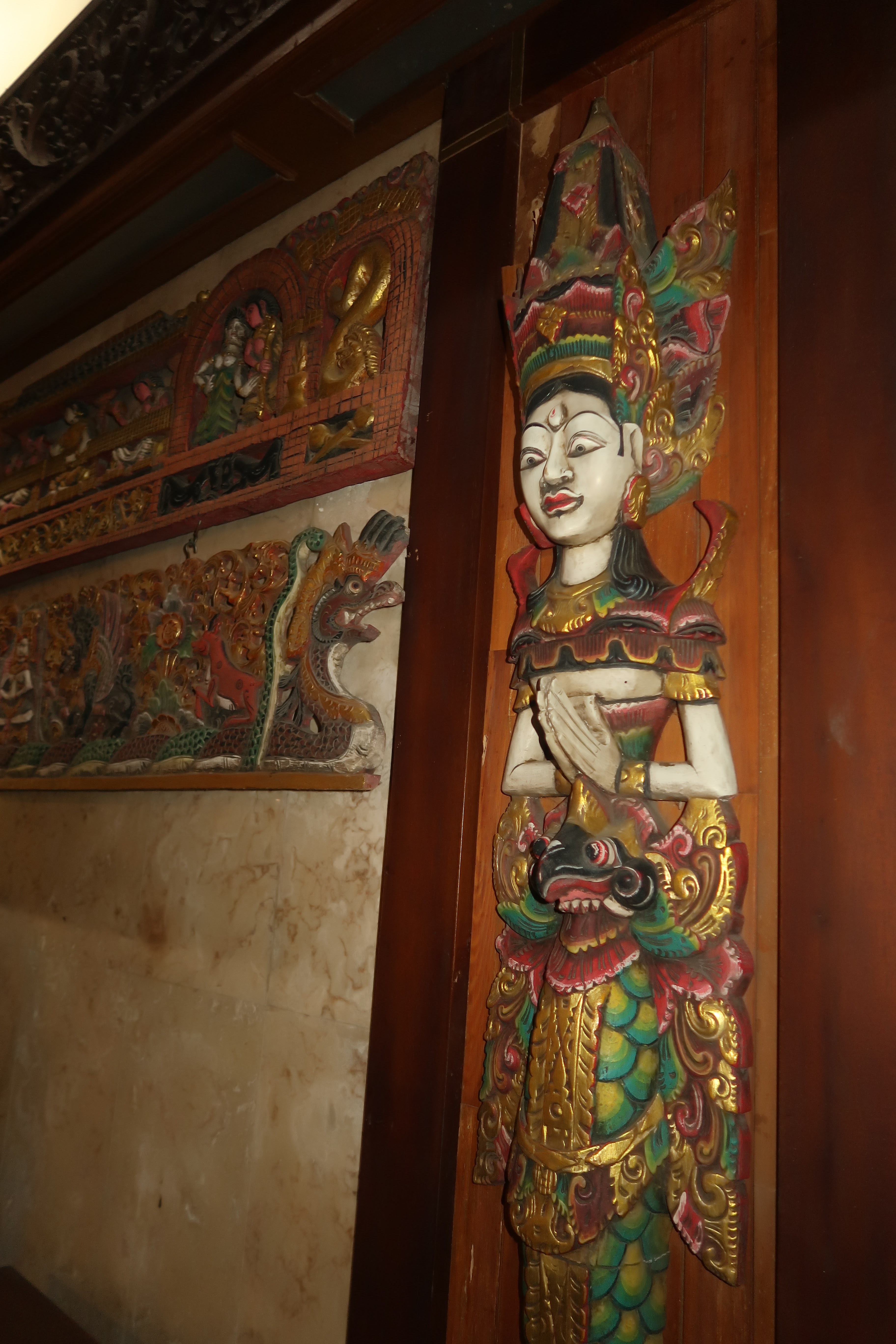 Pagi-pagi, yang bangun duluan siapa? Siapa lagi kalau bukan Mbul? Hihihi. Yang lain masih pada bobok kecapean di jalan. Yawdah kugunakan kesempatan ini buat eksplore dan foto-foto hotelnya. Eh, ga sangka, di bawah lagi ada pemotretan prewed salah seorang warga jogja dengan busana adat jawa dan paesnya. Keren...keren... Tapi aku permisi numpang liwat aja sembari mengamati tiap sudutan hotelnya yang dipenuhi ornamen khas Bali. Juga pajangan benda-benda kuno koleksi hotelnya. Ada lukisan, akuarium isi ikan arwana, serta taman ruang tengah setelah resto dan bagian belakang. Dimana pinggir-pinggirnya adalah room-room lainnya yang dihiasi gambar tokoh-tokoh pewayangan dan lampu gantung serta kursi klasik khas jawa. Terus ada pula pohon jeruk bali di tengah-tengah tamannya yang membuat rimbun suasana.