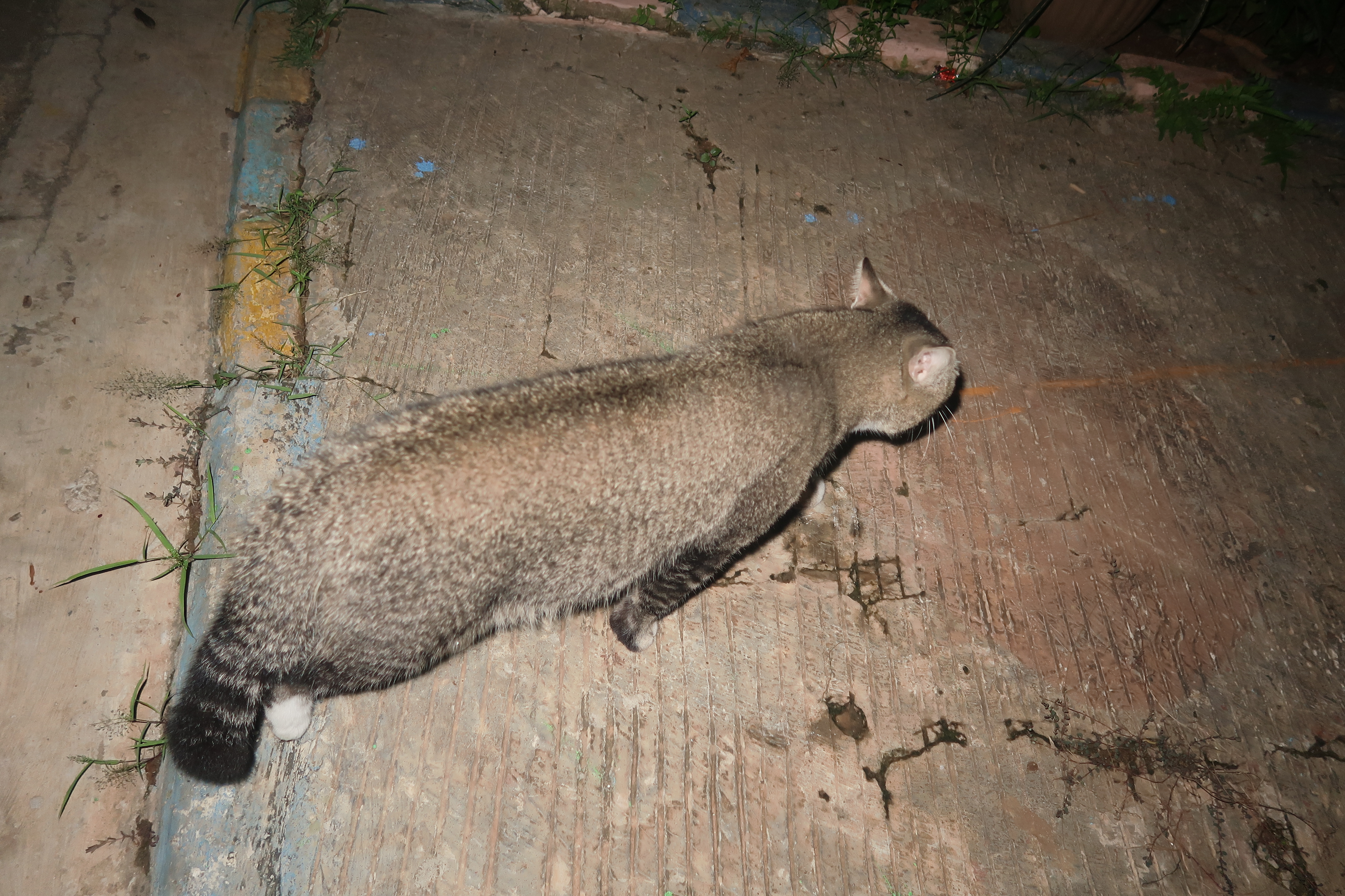 Nah, untuk yang seekor tadi, dia warnanya agak hitam semi klawu ya. Jenis kelaminnya jantan juga karena ada bundel-bundelnya itu loh hehehe...Nah, dia juga sama-sama gemuknya kayak kucing kembang asemnya. Tapi sekali lagi ini bukan kucing peliharaannya Mbul ya. Cuma suka dolan juga karena bukan kucing indoor gitu. Kayaknya ini kucing peliharaan orang dari kampung atas yang suka dolan liwat pembatas komplek deh. Jadi memang pada gemuk terpelihara. Bulunya bagus, bersih dan terawat. Lembut untuk dielus-elus. Wah......lucu juga ya.