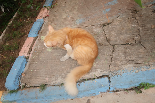 Such a sweet kitty! The mangos must be very sweet and tasty.