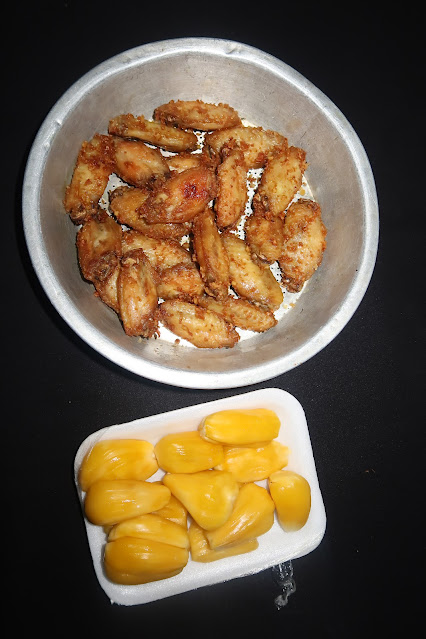 Senin sore, Mbul kepikiran buat mengolah ayam sayap jadi ayam kremesan. Eh tapi karena ada sedikit miss, yang ada rasanya malah jadi kayak ayam bawang, karena Mbul emang pake bawang putih agak banyakan sebagai bumbu marinasinya. Jadi Mbul ngerasa ini jadi kayak ayam bawang bagian swiwi atau sayap wkwkwk. Tak apalah. Rasanya tetap enak kok. Bahkan malah jadi kayak cemilan. Mbul juga sempet bikin kremesannya yang bersarang itu lho. Pakenya perpaduan antara sisa rebusan bumbu marinasi ayam, telur ayam, tepung tapioka, dan tepung beras. Ntar Mbul arahkan sutil di ketinggian sekitar 20 cm-an...dan Mbul tuang adonannya ke dalam minyak panas. Nanti kremesannya bakal bersarang, cantik deh.