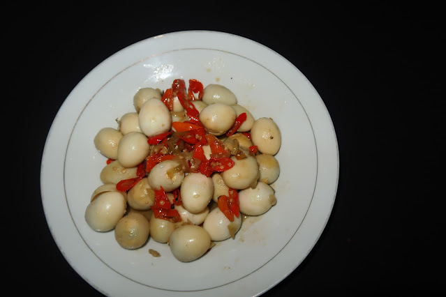 Oh ya, karena Mbul dah ditumbaske telur gemek sekilo di tempat Bapak Pick Up penjual bahan-bahan sembako, termasuk diantaranya telur gemek, maka Mbul pun ditugasin suruh masak telur gemek pada hari ini. Mbul akan masak yang simpel aja tapi semua suka. Masak apakah itu? Mbul jujur lupa ga kepikiran mau bikin jadi sambel goreng telur puyuh yang biasanya ada di kendurenan desa, tapi Mbul malah masak oseng aja hahahha...Terlalu simpel memang, tapi justru itulah letak enaknya...