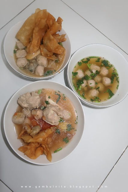 Malamnya, karena ada bakso Bapak-Bapak yang biasa ngiter pake sepeda motor, maka Tamas ajakin Mbul beli. Alhamdulilah, kayak bisa baca pikiran Mbul, Beliau tau aja Mbul lagi pengen bacow. Makanan berkuah favorit Mbul. Si Bapak Penjual baksonya pun langsung semangat begitu pintu rumah dibuka. Mbul panggil Bapaknya dari jarak rumah Om Tetangga, terus Bapaknya langsung gas ngeng dan mandeg depan rumah Mbul dalam sekejab mata.