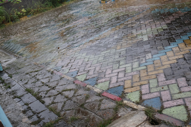 Kalau hujan turun, rasanya hati ini senang. Tentram. Pengennya pejamin mata, terus merasakan bunyinya yang indah....tik...tik....tik...Bunyi hujan di atas genting, airnya turun tidak terkira cobalah tengok, dahan dan ranting, pohon di kebun basah semua #keinget lagu masa kecil. Kalau hujan, talang di dak-dak-an atas jadi rame banget. Bunyinya kenceng macam grojogan. Tanaman kayak disiramin langsung dari langit. Kembang sepatu, asoka merah, murbei, kelor, ekor tupai, mawar, jasmin, semuanya basah. Mbul ga perlu capek-capek naik turun tangga buat nyiramin. Alhamdulilah hujan langsung turun di Bulan September yang manis ini. Meski minus dengan suara kodoknya ya, ga seperti di desa yang kalau abis hujan biasanya akan ada suara kodok bersahut-sahutan, menggema dari arah pematang sawah atau saluran air, kung.... kung...kung....tungtot....tungtot....kung...kung...kung.... tungtooowt tungtowwtt, rame banget.