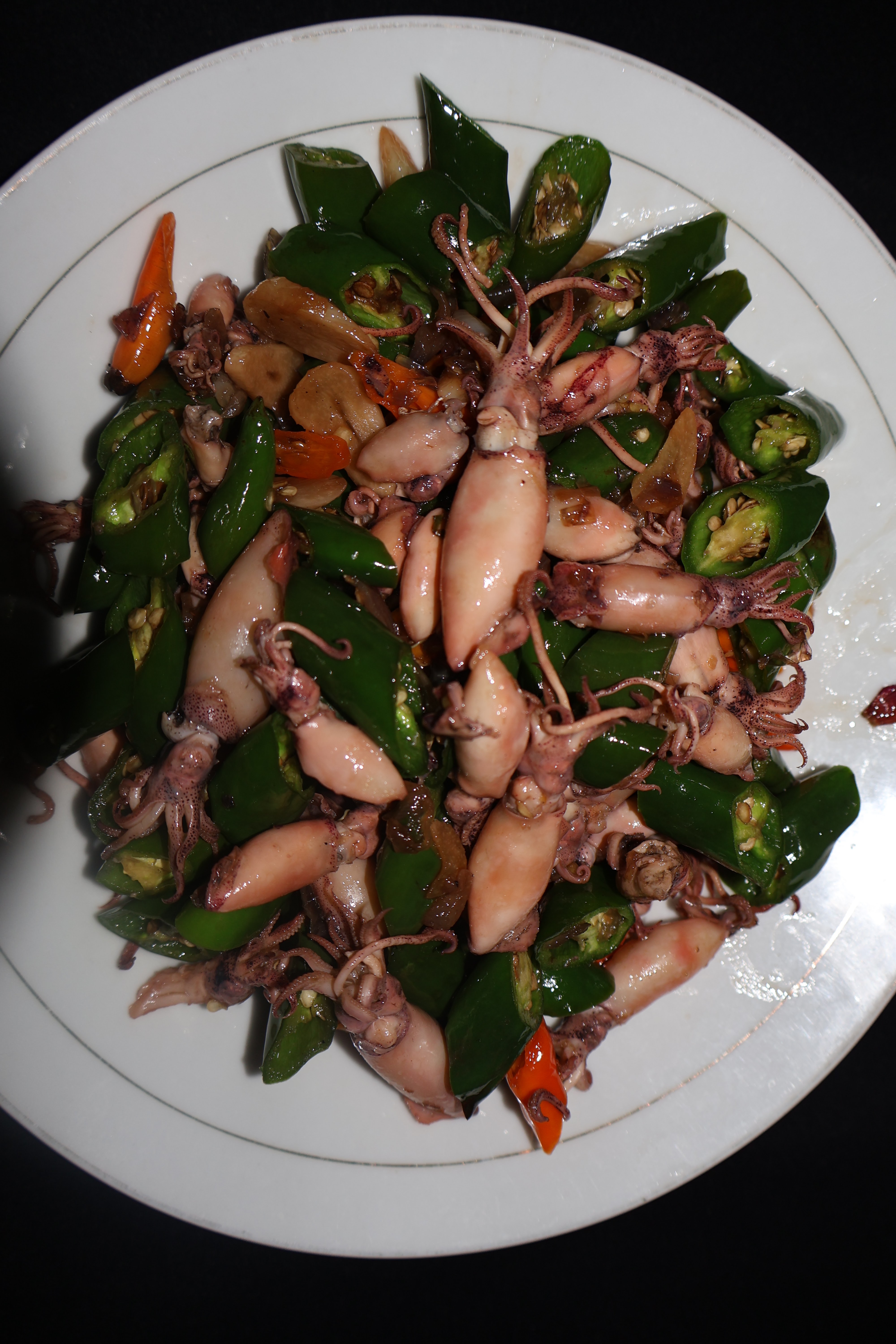 Oiya, tadi pagi aku masak sesuatu yang ringkes tapi rasanya enak. Coba tebag? Yappp... Aku masak oseng cumi cabai hijau. Cuminya cumi asin. Walau kata Tamas ini sih bukan cum Dek, tapi sotong. Liat aja gembung gini bentuknya. Hahahha...Iya ya. Kayak sotong tapi yang ini baby sotongnya. Kalau sotong beneran kan gede. Nah, ini baby sotongnya yang kumasak dengan cabai hijau. Lauknya karena ada telor anyar. Maka kudadarkan agak banyak dan kubikin rada nyempluk. Hmmmm...gurih banget.