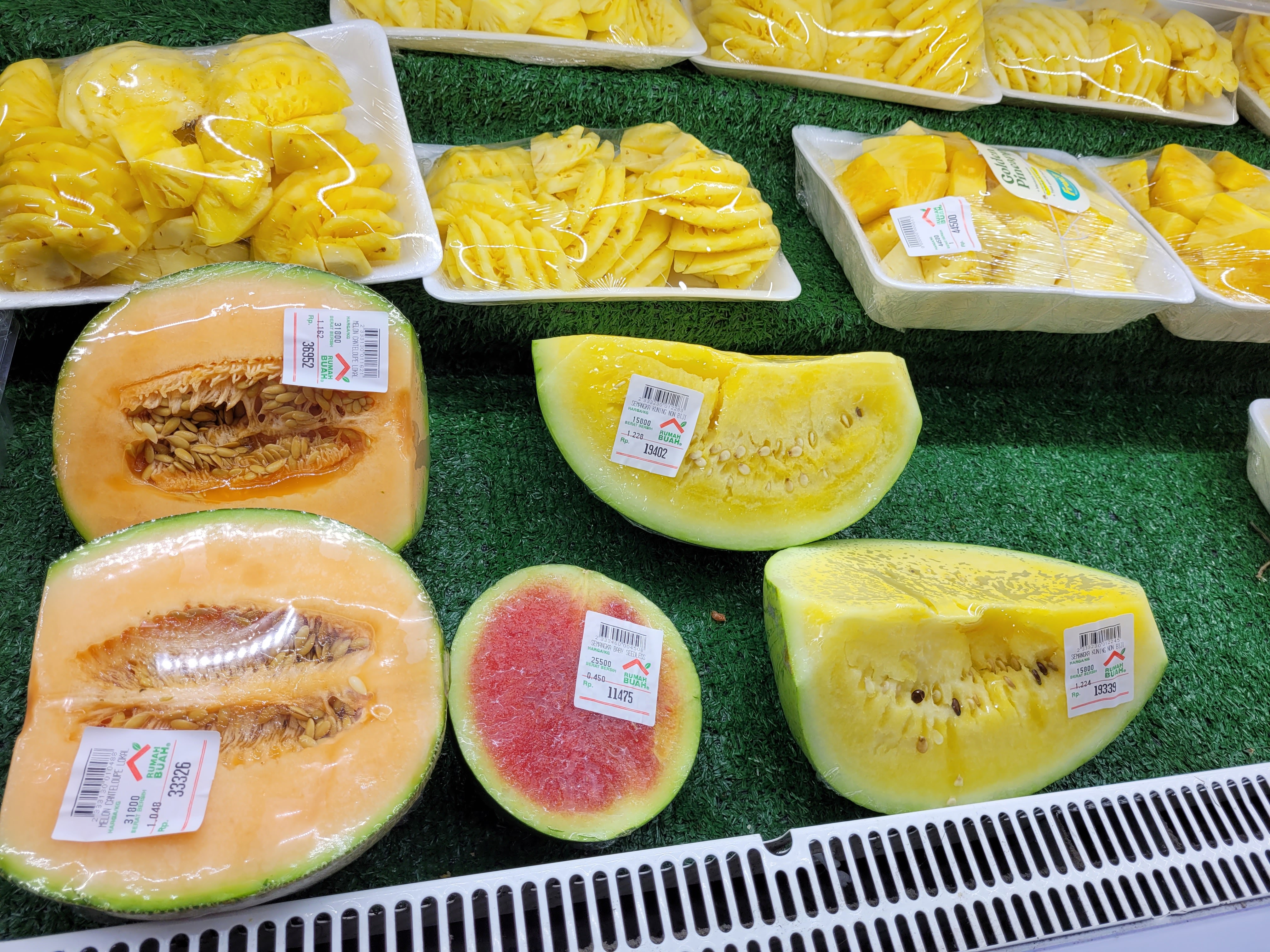Selain melihat kue-kue basah yang menarik hati, hal yang membuatku senang adalah melihat buah-buahan di supermarket dan juga toko stasionary. Buah-buahan di supermarket itu kayak bikin fresh aja apalagi kalau nemu yang lucu-lucu. Ada kesemek, stroberi, delima, jeruk, apel, kiwi, mangga, dll. Meski buah yang umum dan berair seger juga ada. Misalnya kates, semangka, melon, nenas, dan lainnya.