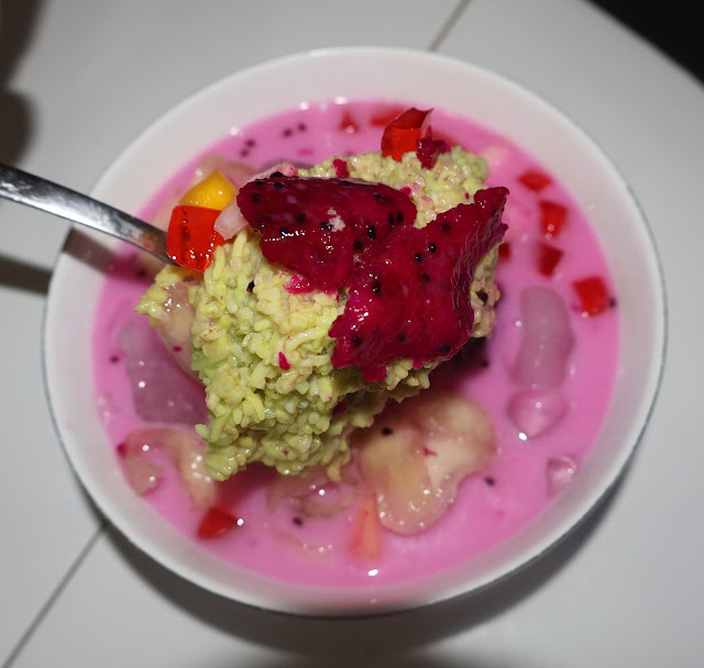 Rabu, 11 Desember 2024, Mbul ada yang anget-anget dengan kuah agak kental yaitu sup krim jagung manis dengan wortel, ayam, seledri dan buncis. Maem ini cocok buat cuaca yang sedang berhujan, bisa ngangetin perut. Tapi ada juag es alpuket yang isiannya selain alpuket ada pula kelapa muda, nangka, dan biji selasih. Tapi ga pake santen melainkan susu UHT Jadi ada perpaduan antara yang anget dan seger... Kalau biasanya ada sop buah dari tempat Om Sop Buah langganan, tapi kali ini adanya es alpuket yang basicnya putih. Dan putihnya karena susu UHT. Jadi seger gitu deh...