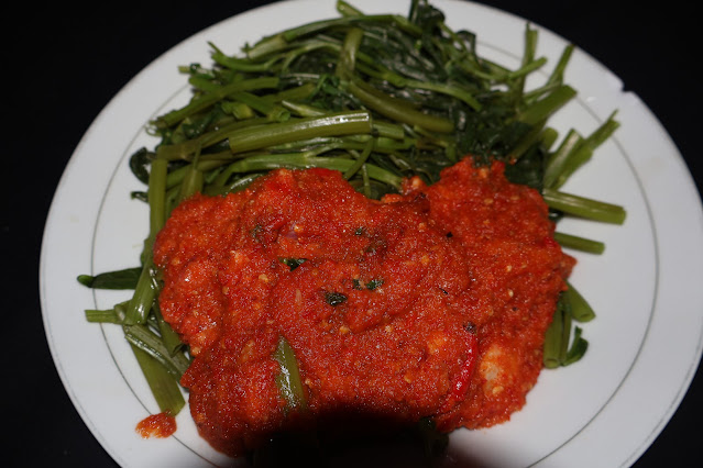 Kangkung rebus siram sambal tomat, sederhana tapi sangat menggugah selera plus tempe, ngga kebayang gimana nikmatnya.