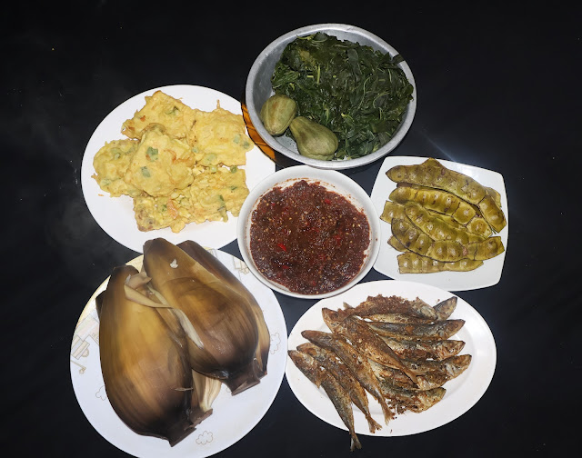 Nasi Pulen, Asin Japuh, Pete, Rebus Daun Singkong dan Waluh Jipang, Sambel Terasi, Tempe Anget ala Neng Beiby Mbul Nita 🩷