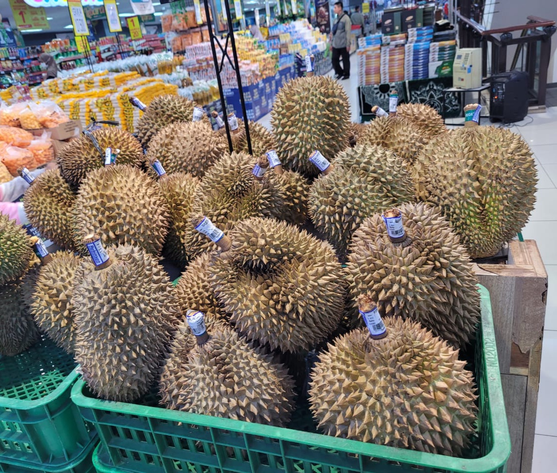 "Ayok Dek, siro nderek ke Robinson Mart ga? Aku dikasih promo durian monthong lho Nduk?" Wakkkkk....kalau diajakin gini sih Mbul maukkkk...Mbul ikoood.... "Kemon ganti klambi, kita jalan sore...." Wokaaaayyy....Mbul pun segera ganti baju.....gyuttt gyuttt gyuuuttt....rampung, mangkat....Cabcus... Kayaknya karena belom jadi ngedurian bawor di Banyumas dan baru ketemunya durian manis legit sedikit getir di Kuningan, jadi sesampainya di rantau lagi masih pengen kulineran durian lagi kami tuw, geggegegekkk...