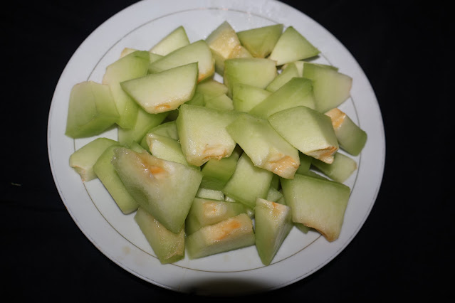 Kalau hari-hari lain, di samping memasak, kami juga sering beli maeman mateng juga sih. Kayak Selasa kemaren, rasanya lagi pengen sante-sante dan mager masak, akhirnya beli mie ayam Om Yoyok malem-malem. Lalu Rabunya beli bebek bumbu hitam favorit kami. Beli sambal hitamnya ekstra aja biar makin mantab. Dimaem bareng nasi pulen dan irisan mentimun segar, hmmm lezatnya. Kemaren aku dibeliin timun lagi ama Suami, juga semangka merah dan melon. Jadinya enak nih buat lalap dan buah potong...Melon dipotong ditaruh di piring, dimaem bareng-bareng, MasyaAlloh Tabaroqalloh....